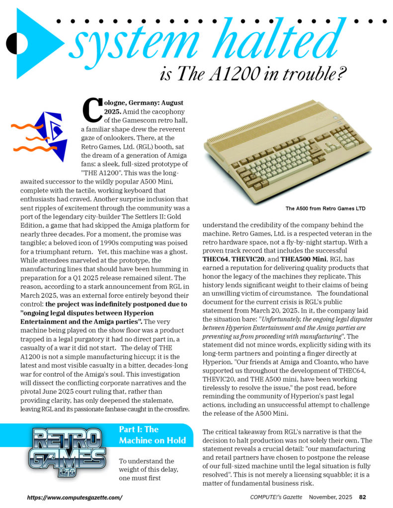 The foundational document for the current crisis is RGL’s public statement from March 20, 2025. In it, the company laid the situation bare: “Unfortunately, the ongoing legal disputes between Hyperion Entertainment and the Amiga parties are preventing us from proceeding with manufacturing”. The statement did not mince words, explicitly siding with its long-term partners and pointing a finger directly at Hyperion. “Our friends at Amiga and Cloanto, who have supported us throughout the development of THEC64, THEVIC20, and THE A500 mini, have been working tirelessly to resolve the issue,” the post read, before reminding the community of Hyperion’s past legal actions, including an unsuccessful attempt to challenge the release of the A500 Mini.